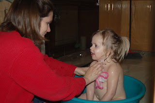 Sawyer wasn't any more interested in sitting still in a tub in the kitchen than he is in his regular bathtub. He spent most of his bath trying to climb out of the tub.